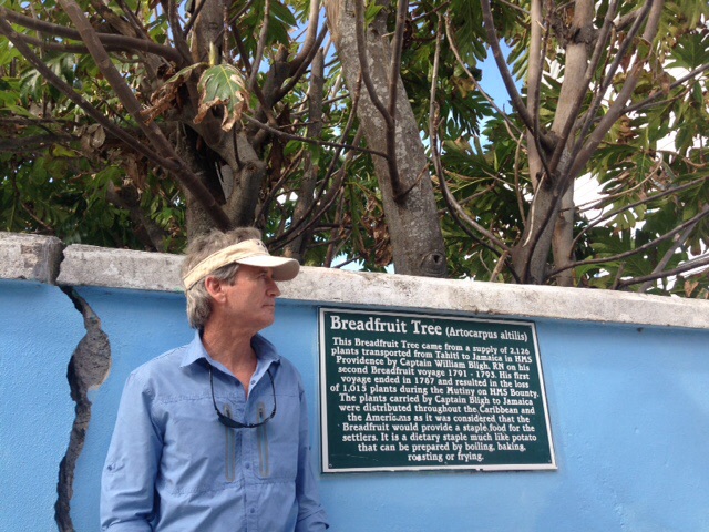 Tom in front of the Bread fruit tree plaque