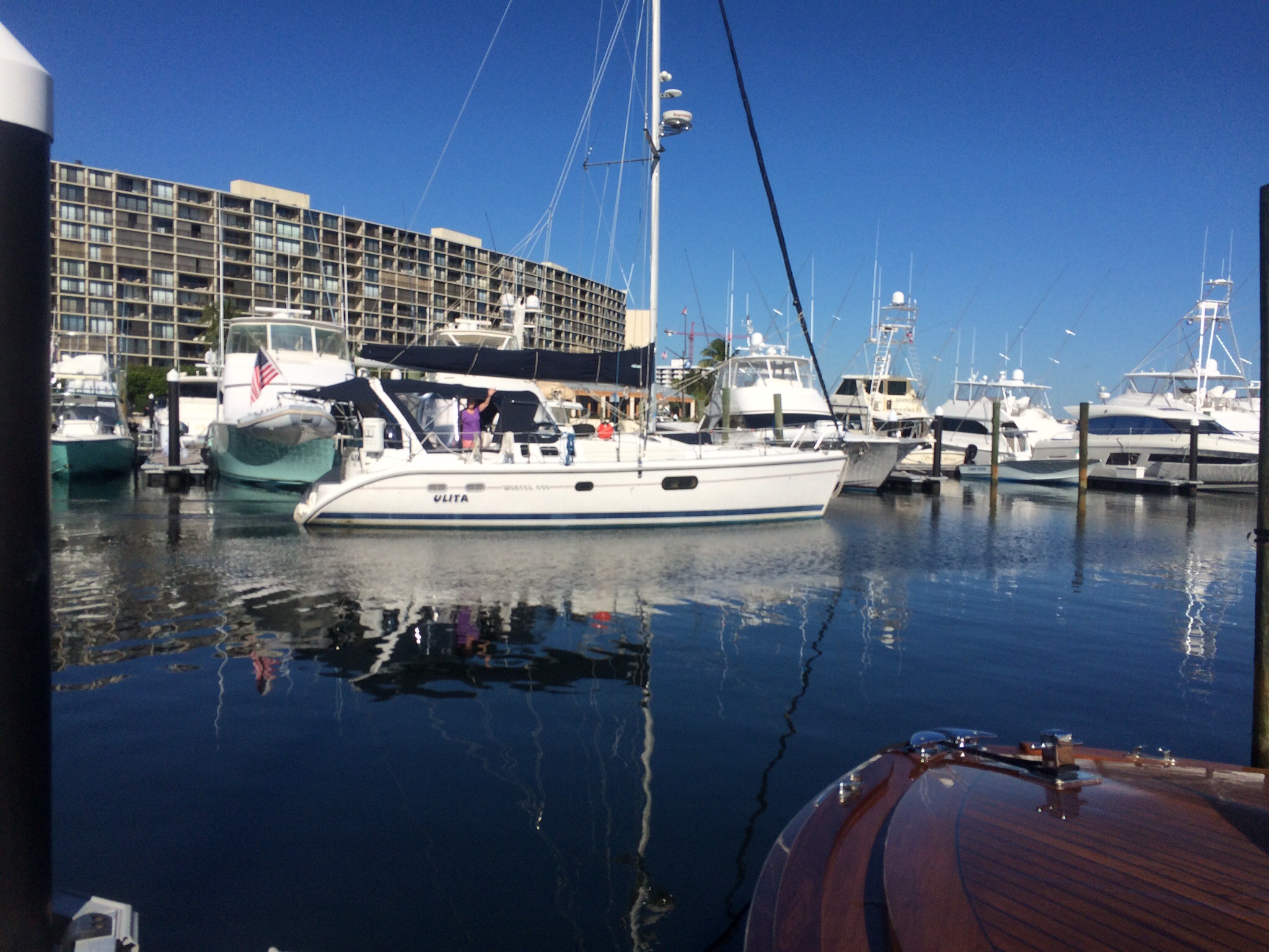 First it was high winds offshore, and now it’s a low pressure system, that has us continuing to hang out in North Palm Beach, probably until Friday. Every decision is a compromise of some sort. Also everyone wants their first time to be memorable for all the right reasons! That applies to crossing the Gulf Stream as well. We look forward to arriving at West End, high fiving, and toasting and smiles all around, not green faced, cleaning up broken wine bottles, and other unfortunate messes and mishaps. So we’ll wait.