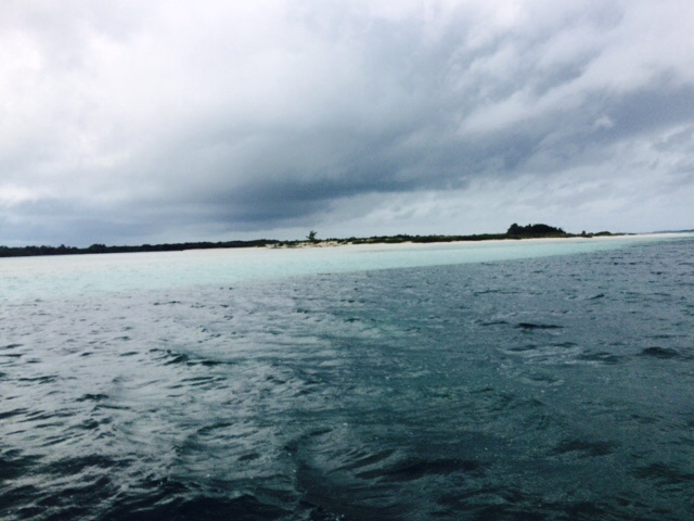 It was thrilling when West End finally came into view. Tom asked me to go up to the anchor pulpit and let him know when I could first see the bottom through the incredibly gorgeous clear water. Our depth sounder quickly went from unreadable depth, to 1500′, 900′, 300′, 100’… I was delighted to announce that I could actually see the bottom and make out shapes and forms at 65′ deep!!! Tom raised the quarantine flag.image