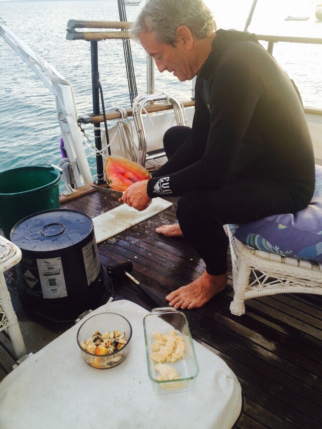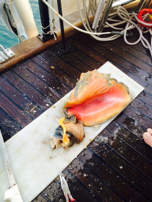 Tom the conch man cleaning his catch