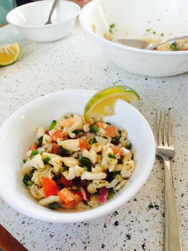 Spicy conch salad goes great with a cold Kalik !